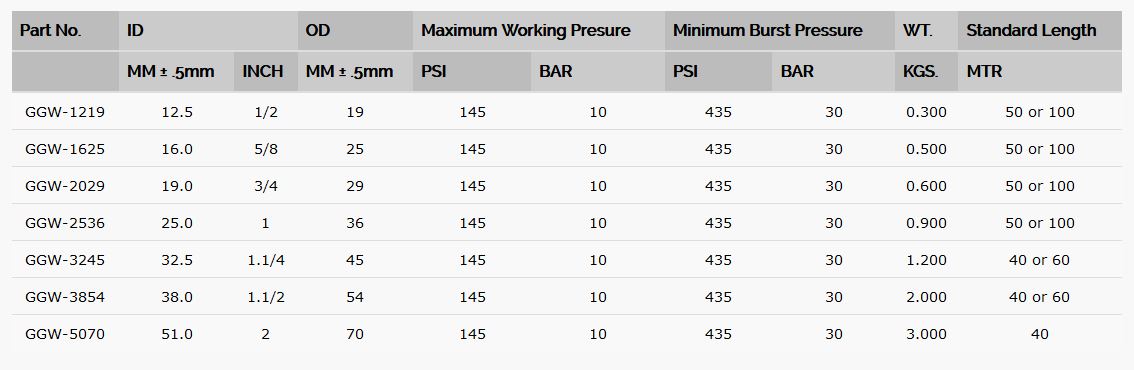 This hose uses for water delivery at construction sites, irrigation, fire fighting and domestic purpose.